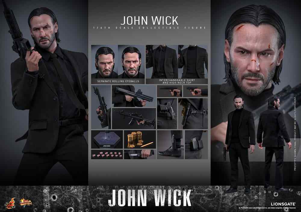 Sideshow and Hot Toys is proud to present the John Wick Sixth Scale Collectible Figure, meticulously crafted the legendary hitman. The John Wick action figure features a newly developed head sculpt with battle-damaged paint applications and separate rolling eyeballs, complemented by a meticulously sculpted, slicked-back hairstyle. With twelve interchangeable hands, from fists and commanding open gestures to suit-holding and gun-holding, this figure enables dynamic action and expressive poses.